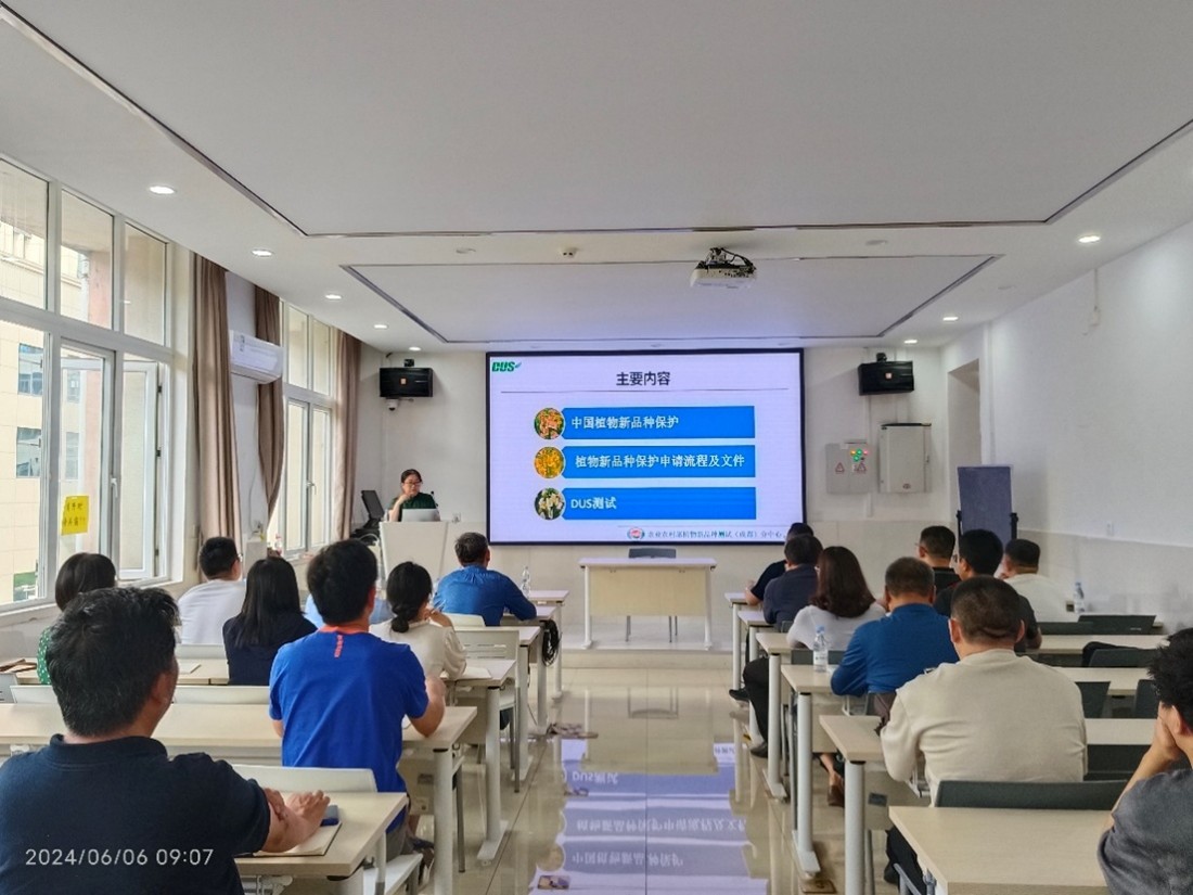 2024年6月6日,西南大学农学与生物科技学院校友、农业农村部植物新品种测试(成都)分中心副主任余毅研究员来我院交流,并在37教学楼207报告厅做了题为《中国植物新品种保护与DUS测试》的专题报告。报告由院长吕典秋主持,院内教师、研究生、本科生代表40余人参加,以及来自重庆市农业科学院生物技术研究所的两名专家。