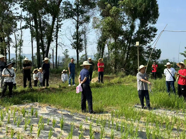 6月17日,重庆市梁平粮油科技小院在梁平区安胜镇开展水稻品质、单产提升新技术应用培训观摩会,通过田间演示、座谈交流等方式,对水稻机械化侧深一次性精准施肥技术、“两化(机械化、绿色化)”覆膜直播技术、水稻中后期管理要点等内容进行田间观摩与技术培训。本次观摩会由重庆市梁平区农业农村委员会、西南大学长江经济带农业绿色发展研究中心主办,重庆市梁平区农业技术服务中心、明月山粮油科技创新中心&梁平粮油科技小院承办。四川省农科院研究员、明月山粮油科技创新中心专家顾问吕世华,重庆市梁平区农业技术服务中心主任罗绍岳、副主任唐松,科技小院负责人刘彬博士及科技小院学生、重庆梁平区社会化服务主体代表、种植户代表等共计30余人参会。