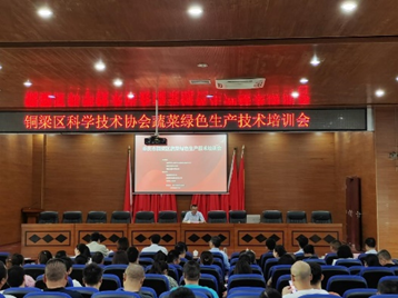 本次培训会由西南大学长江经济带农业绿色发展研究中心、铜梁区科学技术协会、铜梁区农业农村委员会联合主办,铜梁蔬菜科技小院、铜梁桑枝高值利用科技小院、侣俸镇人民政府承办。铜梁区科学技术协会党组书记柳建华、铜梁区科学技术协会副主席曾西明、铜梁区农业农村委员会副主任杨晓林、铜梁区农业农村委农民科技教育培训中心副主任唐洪兵、侣俸镇副镇长孙贤菊、重庆龙裕城乡建设开发有限公司熊杰、重庆市农业科学院蔬菜花卉研究所研究员张世才、重庆市农业科学院农业资源与环境研究所副研究员梁涛、西南大学长江经济带农业绿色发展研究中心副主任陈新平教授、西南大学资源环境学院刘芸教授、西南大学长江经济带农业绿色发展研究中心王孝忠副教授、主任助理谭庆军出席会议。此外,铜梁蔬菜科技小院硕士研究生、铜梁区镇街产业发展服务中心负责人、蔬菜侣俸镇村干部及典型蔬菜业主代表共计60余人到场参会。