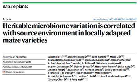 3月21日,西南山地粮油作物教育部工程研究中心陈新平教授团队联合德国波恩大学等国内外多所高校在Nature Plants发表了题为“Heritable microbiome variation is correlated with source environment in locally adapted maize varieties”的论文,揭示了非生物胁迫下植物-微生物有益互作的遗传基础和环境调控机制。