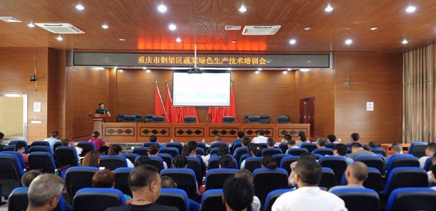 为提高铜梁区蔬菜种植产业技术水平,发展壮大蔬菜产业,助力乡村振兴,6月30日,重庆市铜梁区蔬菜绿色生产技术培训会在侣俸镇顺利举办。此次会议由西南大学长江经济带农业绿色发展研究中心、铜梁区农业农村委员会、侣俸镇人民政府联合主办,铜梁蔬菜科技小院、重庆龙裕城乡建设开发有限公司、重庆智慧农业服务(集团)股份有限公司、四川美丰化工股份有限公司承办。铜梁区农业农村委员会产业科副科长付建、侣俸镇副镇长孙贤菊、重庆市智慧农业服务(集团)股份有限公司铜梁公司总经理刘波、四川美丰技术经济研究院副院长赵曙光、西南大学长江经济带农业绿色发展研究中心副教授王孝忠、主任助理谭庆军出席会议。此外,还有各企业代表、铜梁蔬菜科技小院硕士研究生以及铜梁区五个乡镇蔬菜种植业主共计113人到场参会