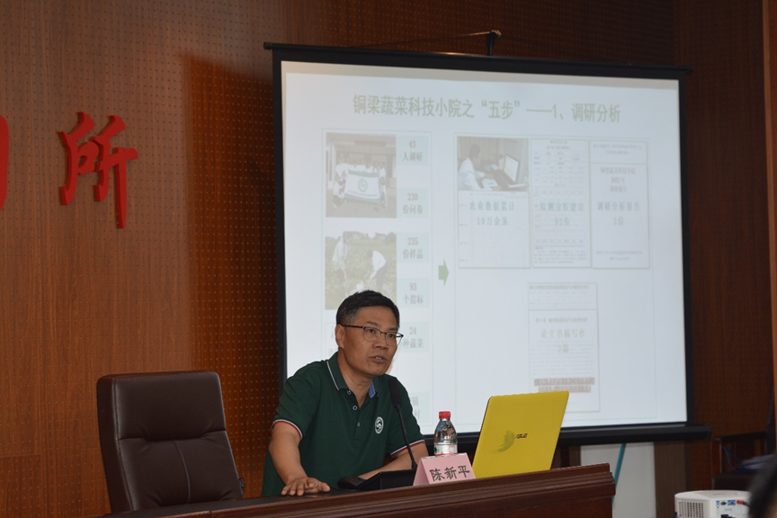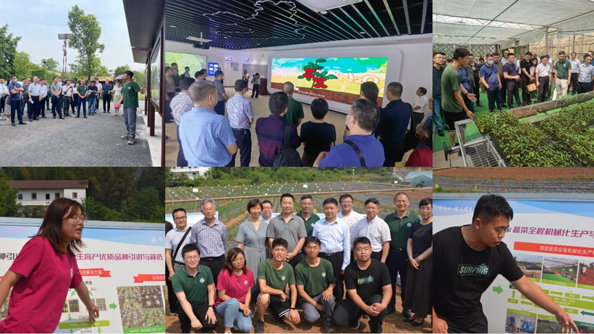 下半场在铜梁乡村振兴馆举行工作交流会。“科技小院是‘政产学研用’紧密结合的新模式,也是农业科技人员把论文写在祖国大地上的新平台。建议各科技小院以铜梁蔬菜科技小院为榜样,紧扣绿色发展主旋律,研究制定全产业链解决方案,各位专家特别是首席专家要以科技工作者的情怀,把科技小院打造成科技创新、教书育人、农技服务的响亮品牌。”牛杰在讲话中指出;接着,铜梁区区委副书记屈锐、区科协主席陈恒煦、区农委副主任戴安勇从地方政府的角度分享了与西南大学“校地共建科技小院,树立长江经济带蔬菜绿色发展样板”的成功经验与具体做法;随后,科技小院重庆联盟代表中国农技协为重庆市新建的10个科技小院授牌;紧接着,铜梁蔬菜科技小院首席专家陈新平教授为新建科技小院授课,他认为科技小院在国家农业绿色发展与乡村振兴中大有可为,并为大家剖析了铜梁蔬菜科技小院 “三多(校方多门学科交叉、地方多个部门协同、校地多方资源赋能)五步(调研分析、平台建设、科技创新、产业服务、人才培养)”新路径;最后,阿里巴巴淘菜菜有关负责人介绍了淘菜菜+科技小院合作模式。