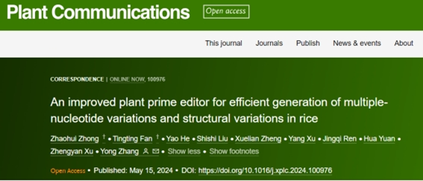 植物基因组中的单碱基变异(single-nucleotide variations,SNVs)、多碱基变异(multiple nucleotide variations,MNVs)和结构变异(structural variations,SVs)对于基因功能研究和生物学性状提升有着起着重要作用。但现有基因组编辑方法受制于编辑精度有限、编辑事件非定向等因素,难以实现上述变异材料的有效定向获得。2019年,David Liu课题组开发的引导编辑器(prime editor, PE)经多次迭代升级,目前在哺乳动物细胞中已实现任意碱基替换编辑及插入删除等结构变异的有效创制,然而植物中引导编辑效率仍然较低,限制了SNVs,MNVs和SVs在重要农作物基因组中的有效获得。
