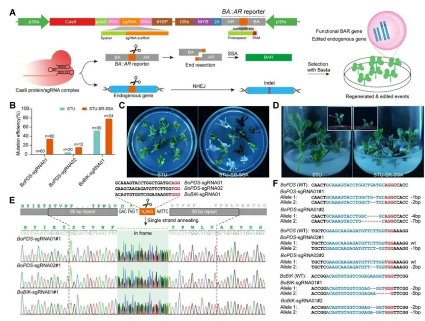 图3 STU-SR-SSA基因组编辑系统在双子叶植物甘蓝中的应用